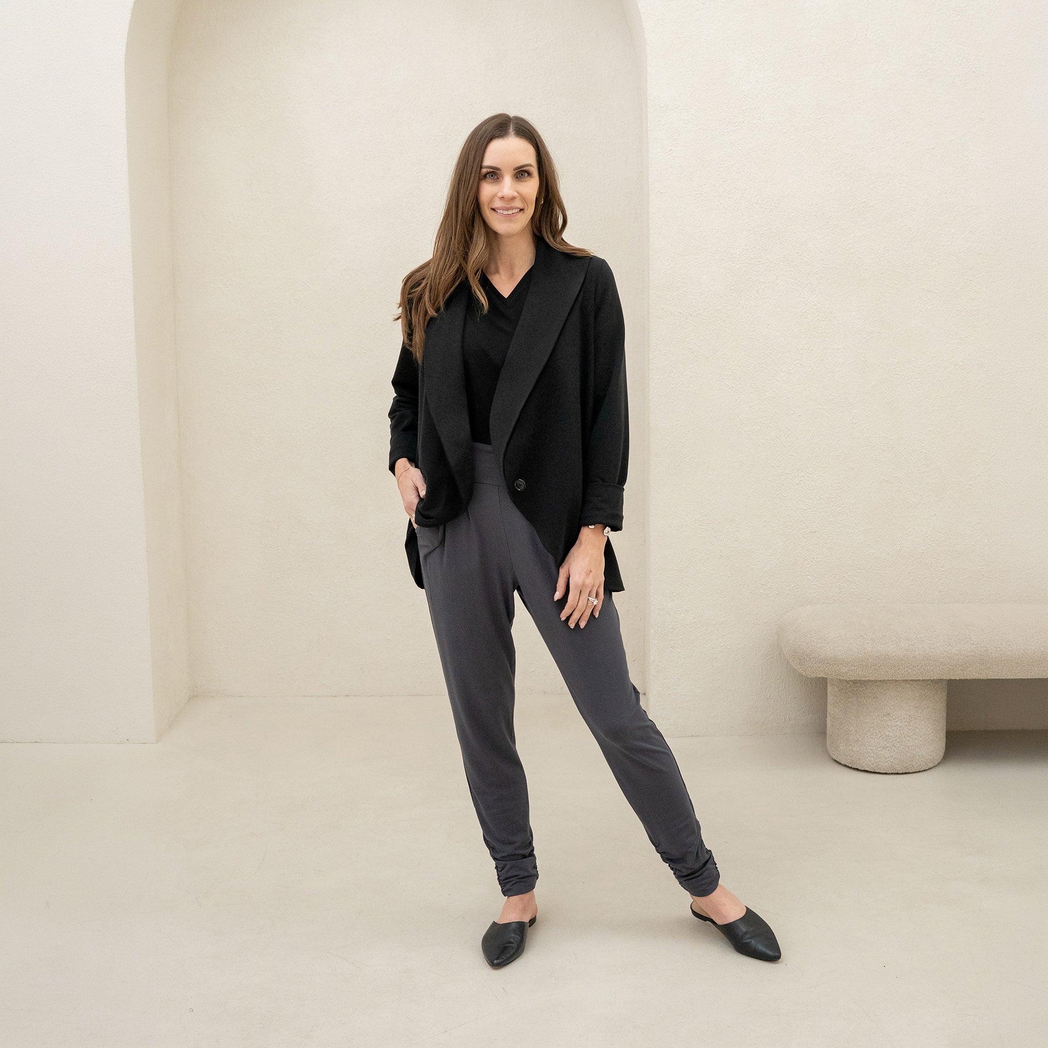 Versatile pieces that build outfits fast. Soft, natural fabrics—thoughtfully made in Canada in small batches.
