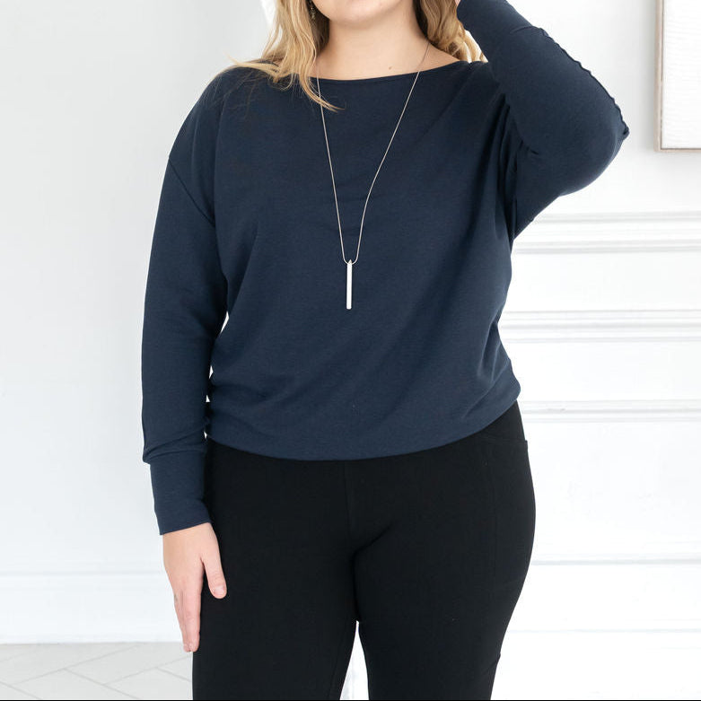 The Dressy Sweatshirt in MERINO is made from a French Terry blend of Rayon from Bamboo, Merino Wool and Spandex. The Merino Wool is non-mulesed, and cruelty-free. The fabric is OEKO-TEX® STANDARD 100 certified to be free from harmful chemicals.