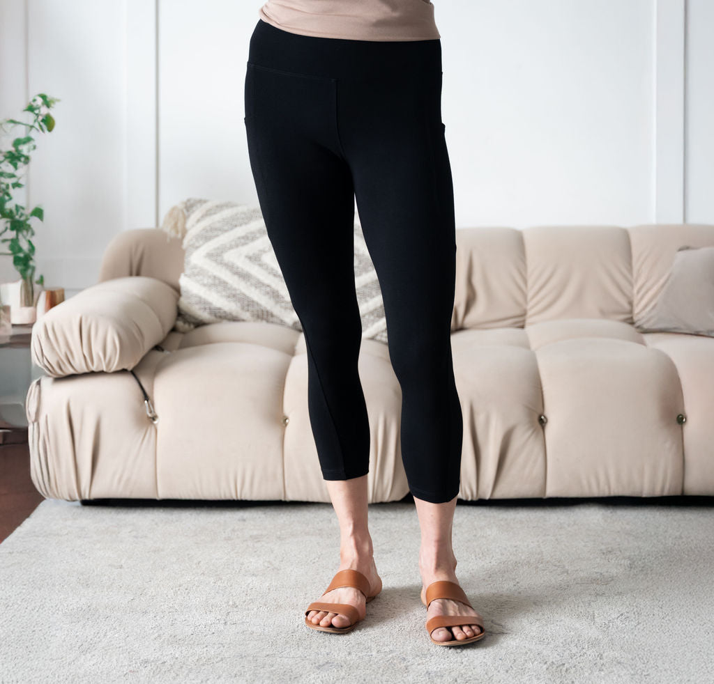 From office to errands to yoga—these cropped leggings are up for it all. Made from breathable 4-way stretch bamboo with a sleek high-rise waist and two side pockets, they deliver comfort and function without compromise. A capsule wardrobe essential, thoughtfully sewn in Toronto.