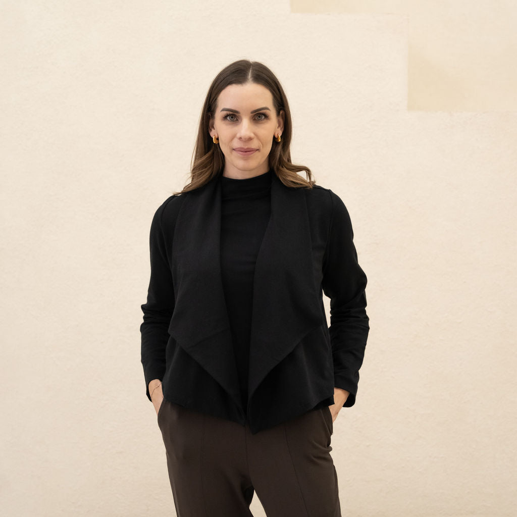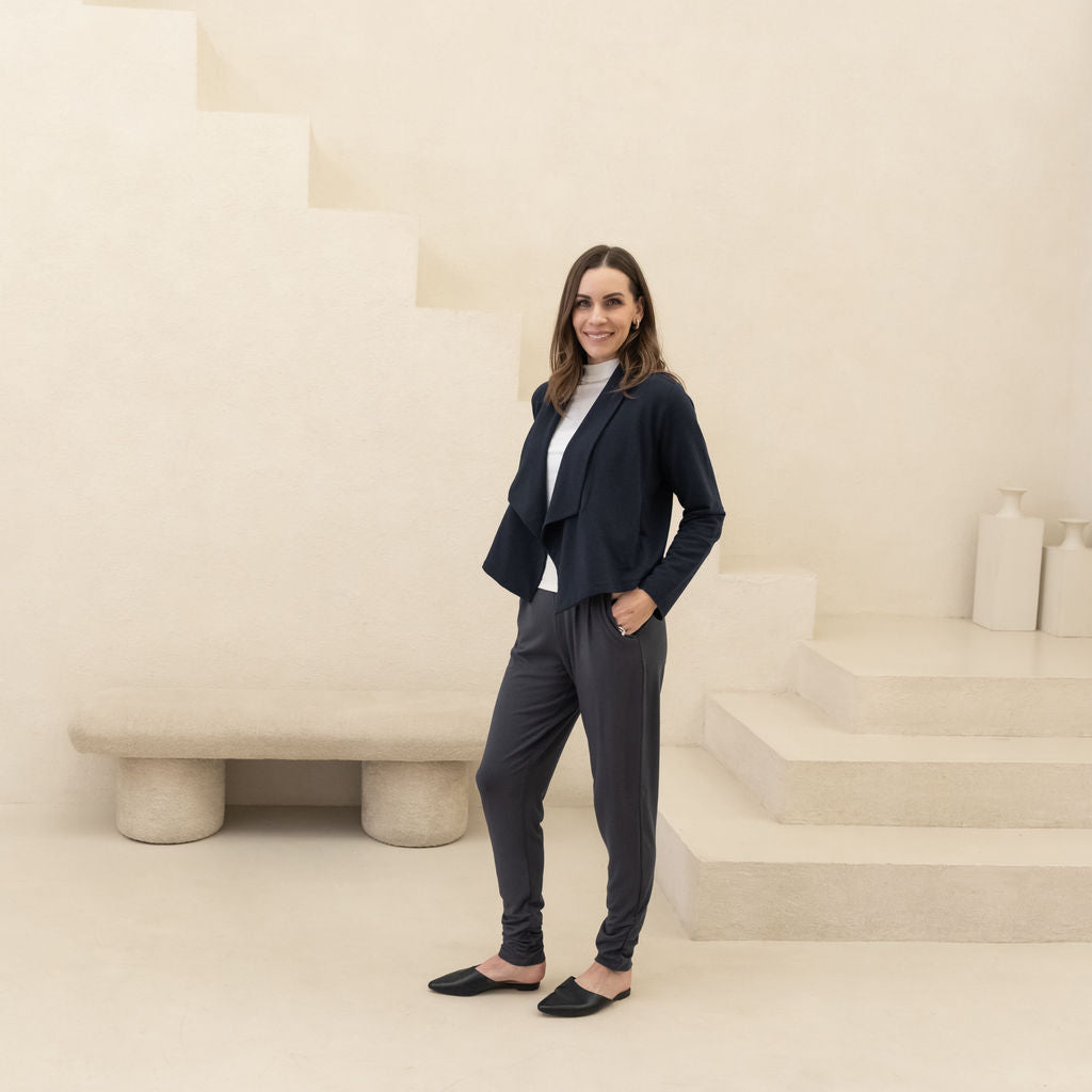 We use premium, breathable fabrics and design pieces to last—so they keep their shape, softness, and polish wear after wear. Cut + sewn in Canada in small batches for craftsmanship you can count on.