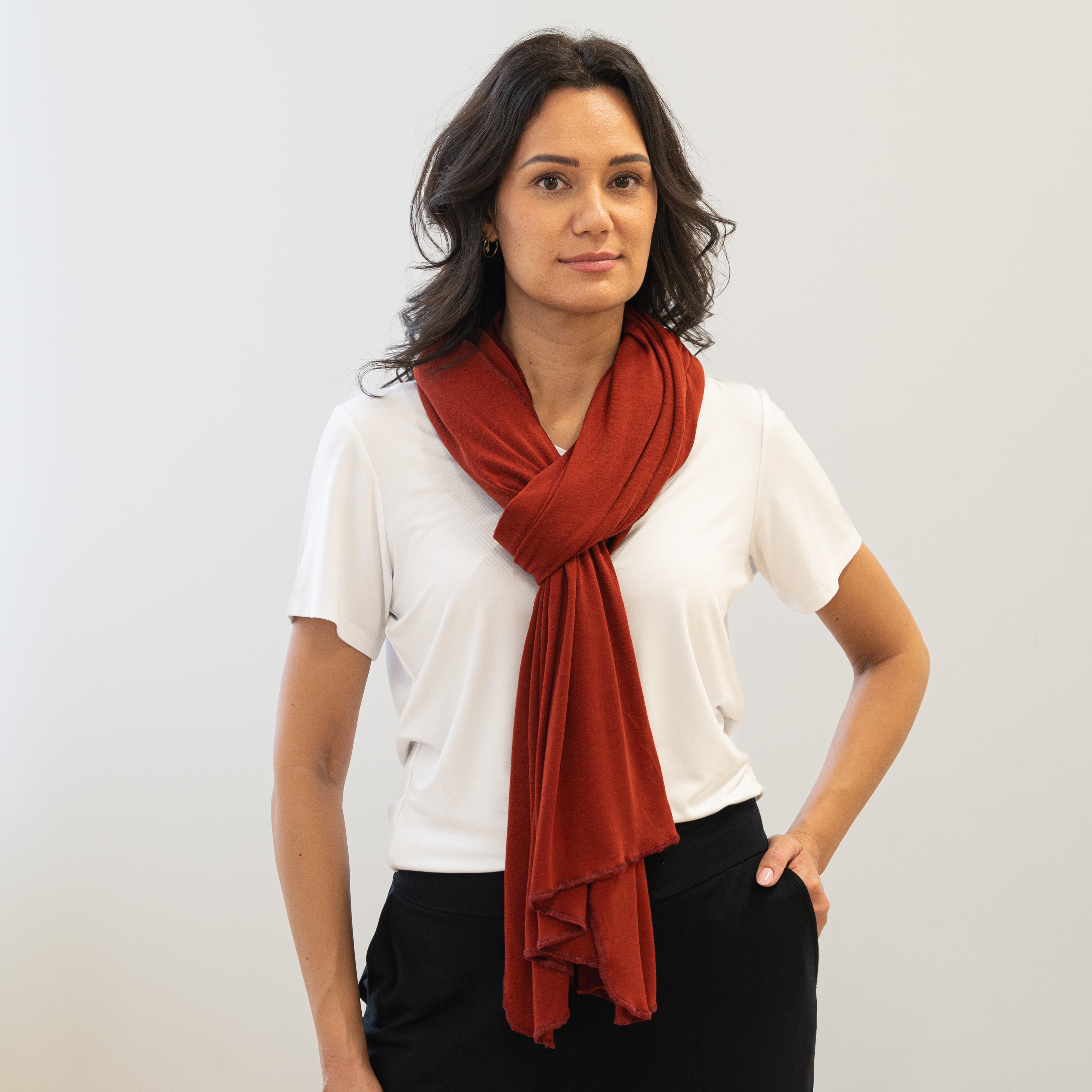 The paprika color is just gorgeous! This is just what I needed in my wardrobe right now…lightweight but warmth from the merino, versatile enough to be a scarf or a wrap so perfect for travel, and the length is perfect!