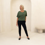 The Everyday Boxy Tee in solid colours is made from bamboo/cotton stretch jersey.