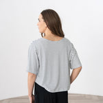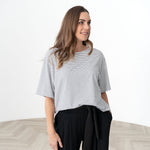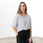The Everyday Boxy Tee in Navy and White Stripe is made from bamboo/organic cotton jersey.