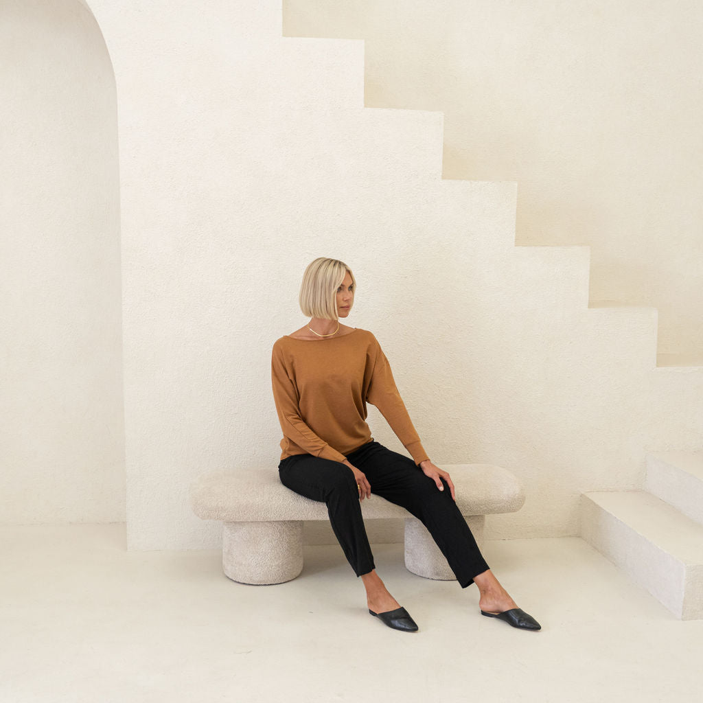 All Wanderer Pant styles are crafted from our signature heavyweight MicroModal® Lycra jersey, knit and dyed in Canada. This fabric is incredibly soft—think of a smooth, silky feel that drapes beautifully and stretches with your every move.