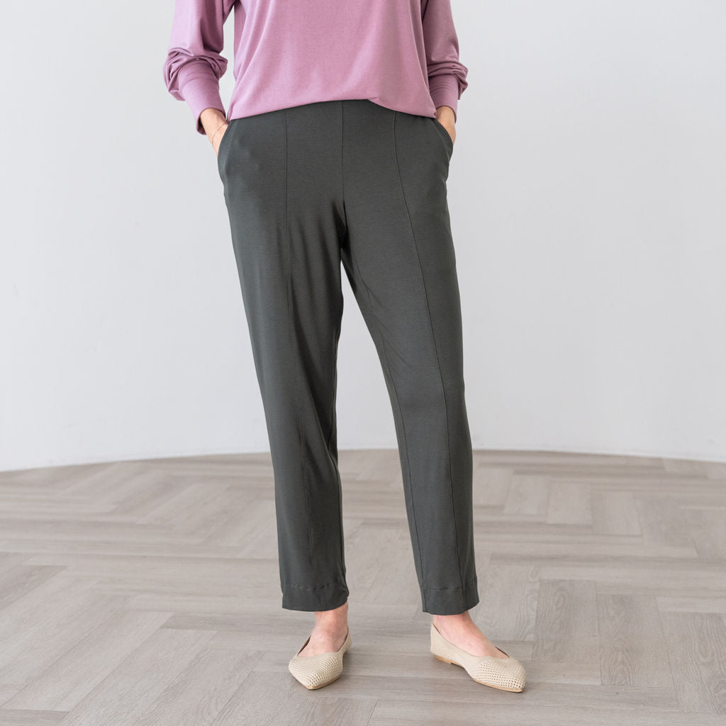 ll three pants share the same buttery-soft, sustainable MicroModal fabric, comfortable mid-rise fit, and thoughtful details—what sets them apart is the leg shape and styling features: