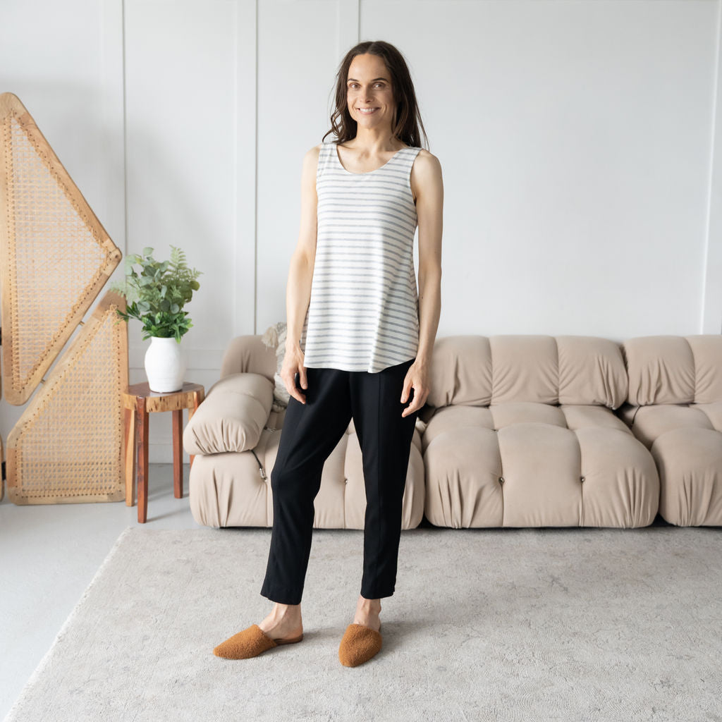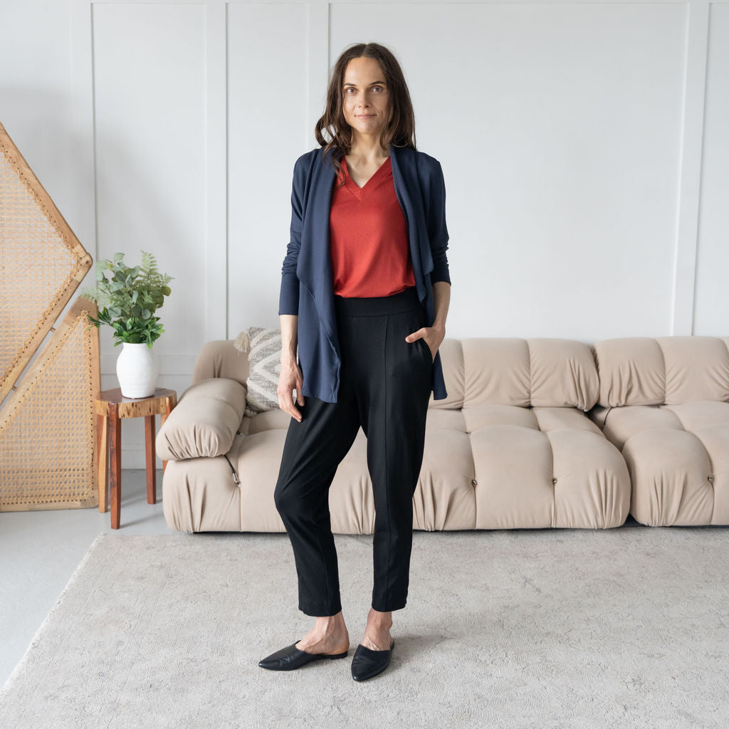 All Wanderer Pant styles are crafted from our signature heavyweight MicroModal® Lycra jersey, knit and dyed in Canada. This fabric is incredibly soft—think of a smooth, silky feel that drapes beautifully and stretches with your every move.