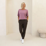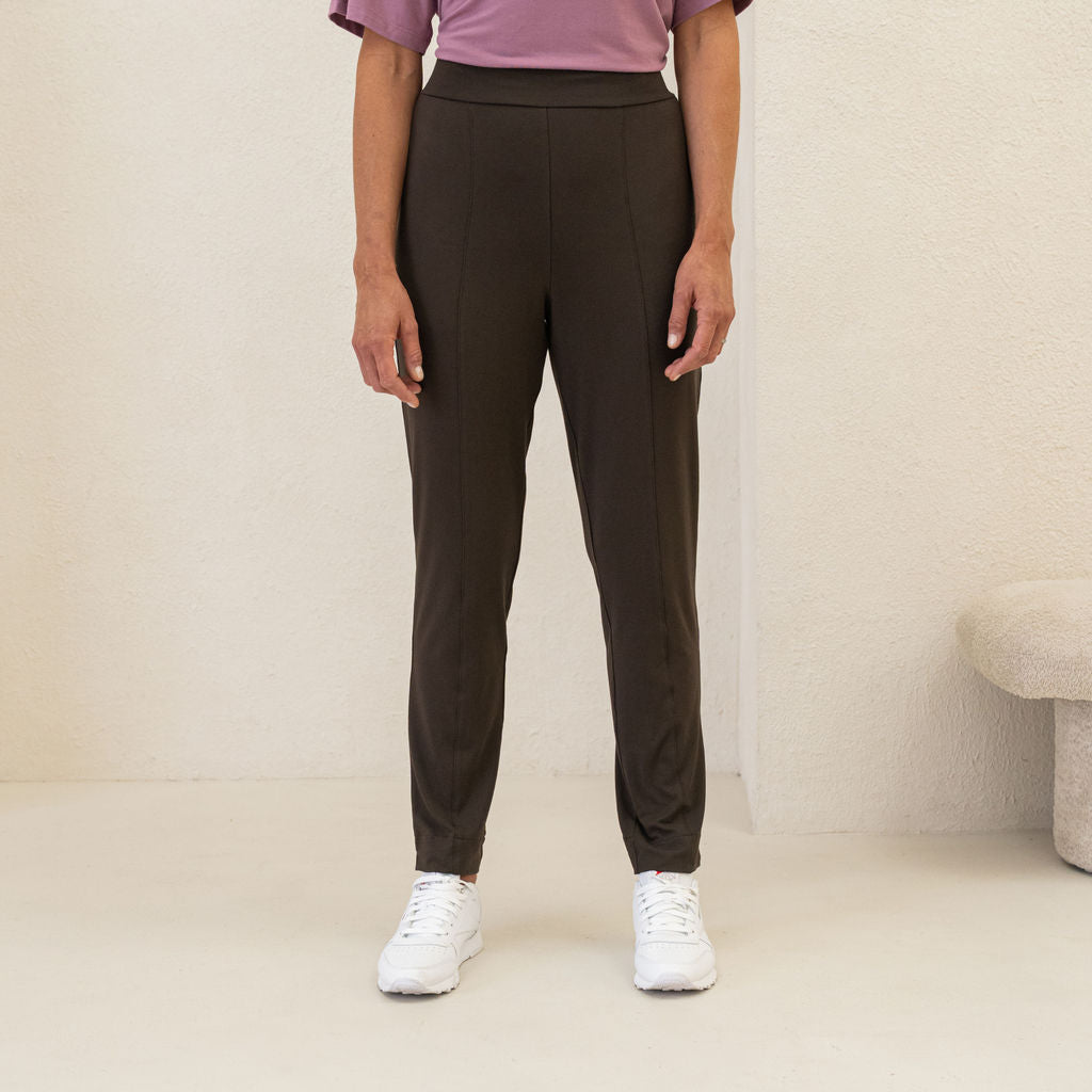 Chic style meets all-day comfort with The Wanderer Slim Leg Pant — combining a sleek, tailored fit with the comfort of our softest, and dressiest fabric - MicroModal. Featuring a slim ankle-length silhouette, three functional pockets, and a comfy half-elastic waistband, this pant is perfect for travel or everyday wear.