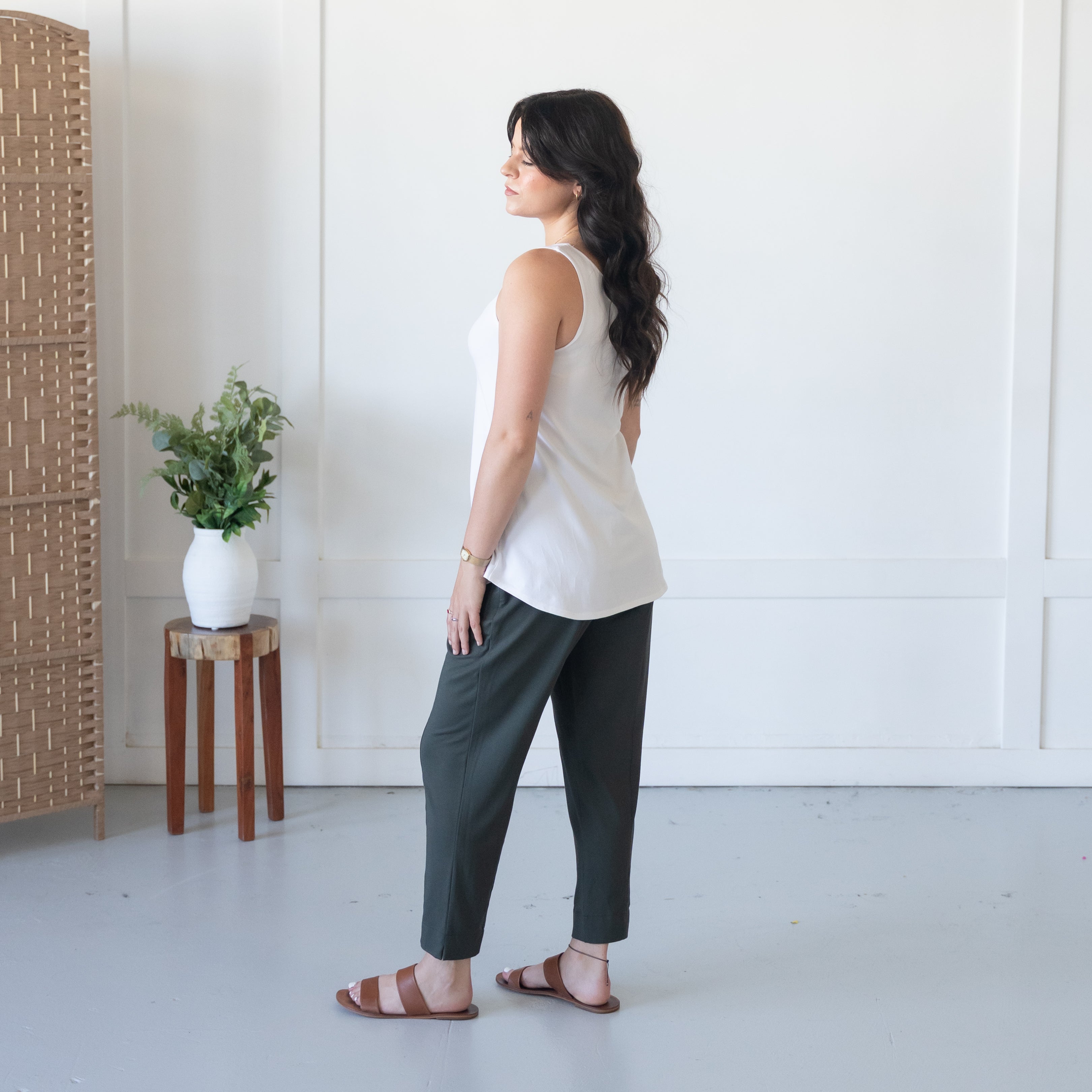 ll three pants share the same buttery-soft, sustainable MicroModal fabric, comfortable mid-rise fit, and thoughtful details—what sets them apart is the leg shape and styling features: