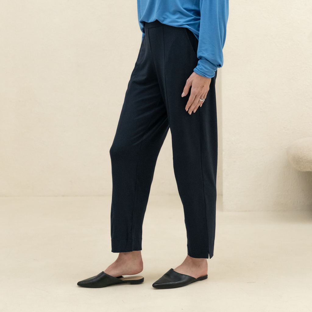 All Wanderer Pant styles are crafted from our signature heavyweight MicroModal® Lycra jersey, knit and dyed in Canada. This fabric is incredibly soft—think of a smooth, silky feel that drapes beautifully and stretches with your every move.
