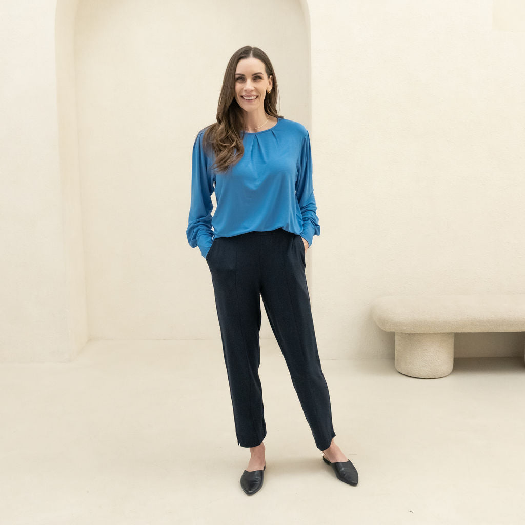 ll three pants share the same buttery-soft, sustainable MicroModal fabric, comfortable mid-rise fit, and thoughtful details—what sets them apart is the leg shape and styling features: