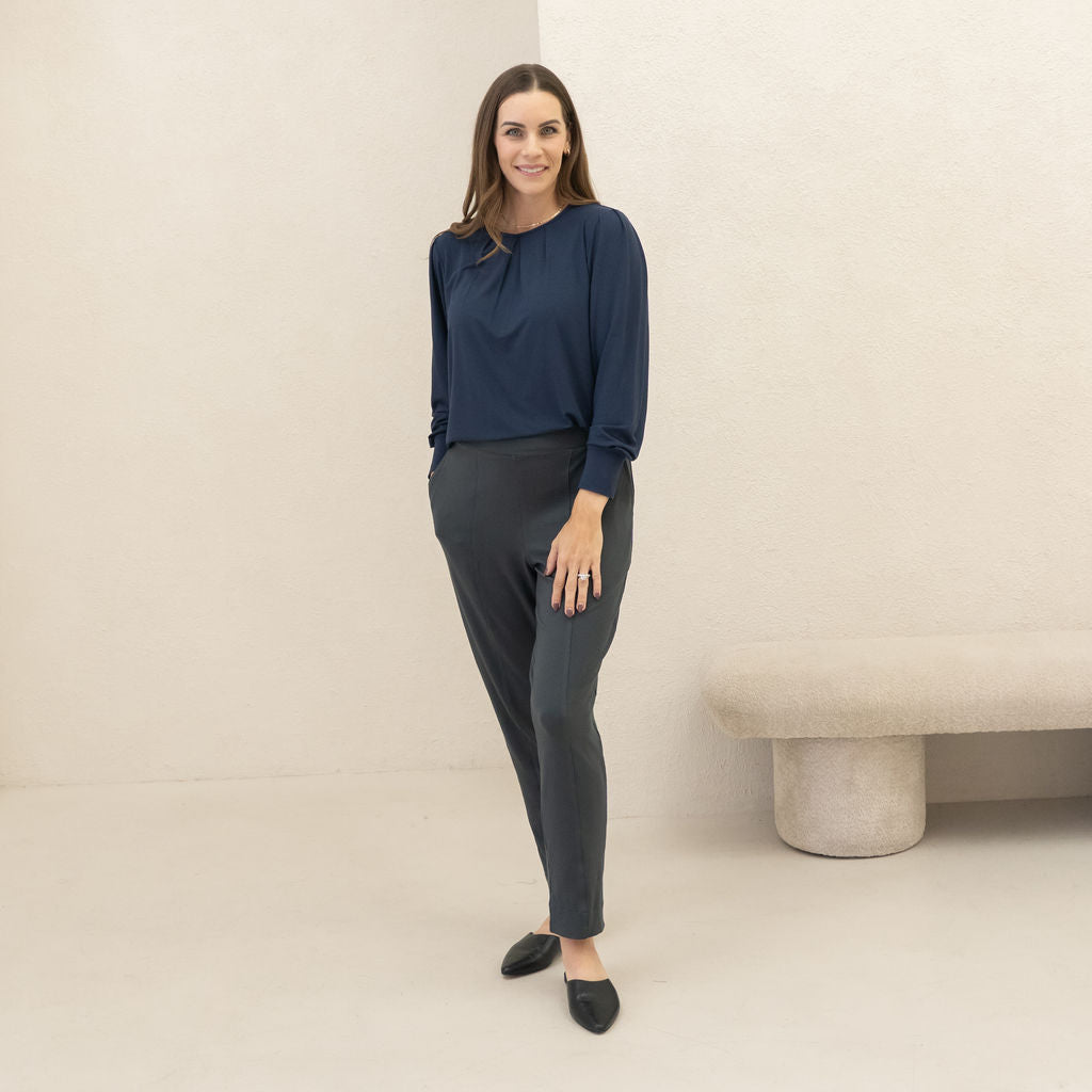 Chic style meets all-day comfort with The Wanderer Slim Leg Pant — combining a sleek, tailored fit with the comfort of our softest, and dressiest fabric - MicroModal. Featuring a slim ankle-length silhouette, three functional pockets, and a comfy half-elastic waistband, this pant is perfect for travel or everyday wear.