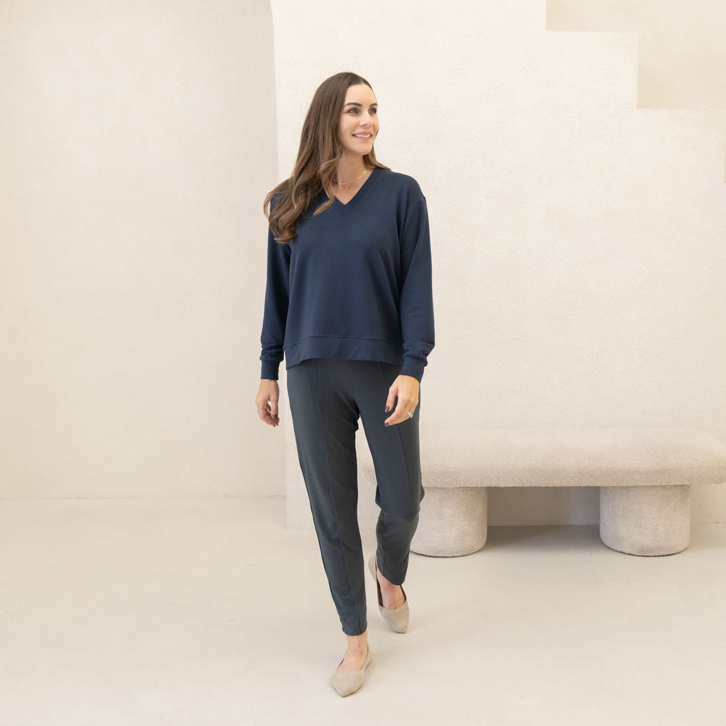 All Wanderer Pant styles are crafted from our signature heavyweight MicroModal® Lycra jersey, knit and dyed in Canada. This fabric is incredibly soft—think of a smooth, silky feel that drapes beautifully and stretches with your every move.
