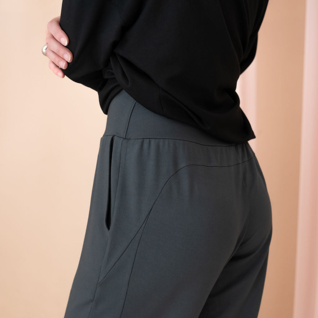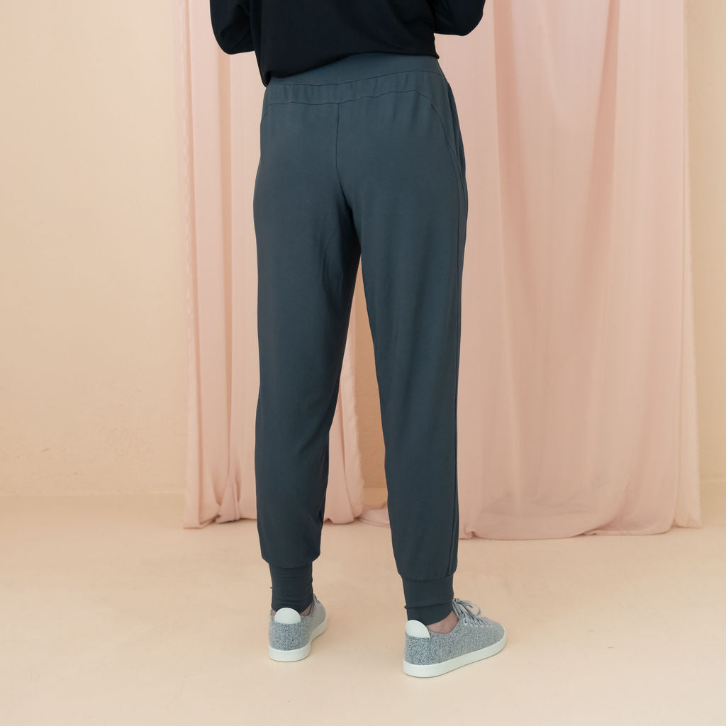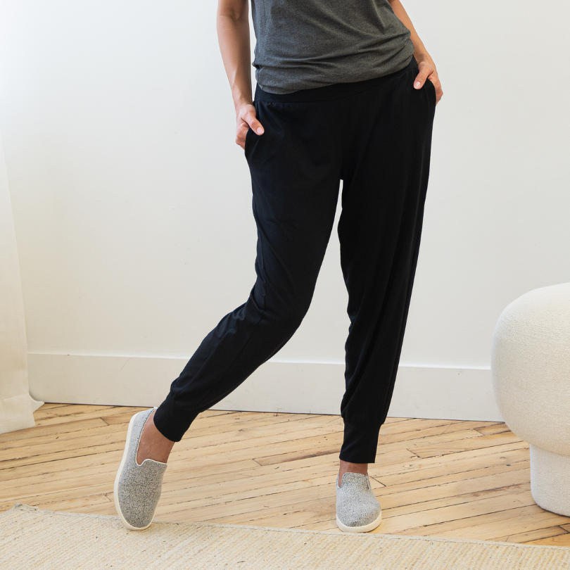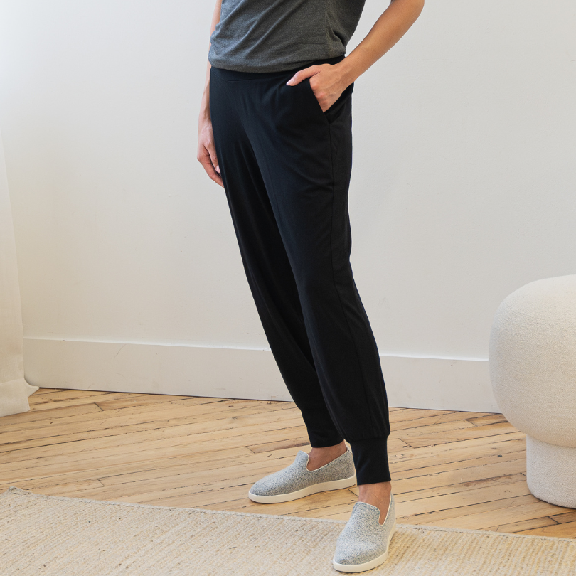 Our Jogger is made from the same fabric as our Dressy Sweatpants. It's a blend of 90% Lenzing MicroModal® | 10% Lycra. Our Lenzing MicroModal® fabric is knit and dyed in Toronto, Canada.