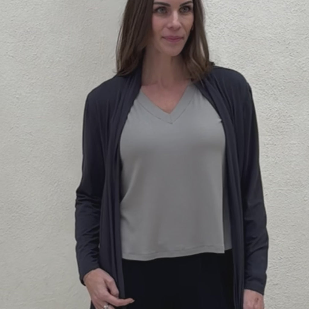 The perfect blend of style and comfort: The Reversible Shell Top. Crafted from luxuriously silky-soft Ribbed Modal fabric, it features 2 neck-line options: a v-neck and a boat neck. Ideal for any occasion, this tank combines timeless elegance with endless styling options. Experience the unmatched comfort and ease with this flattering layering top.
