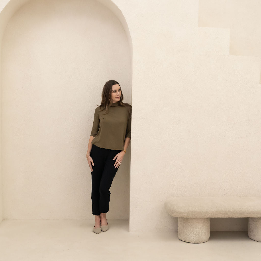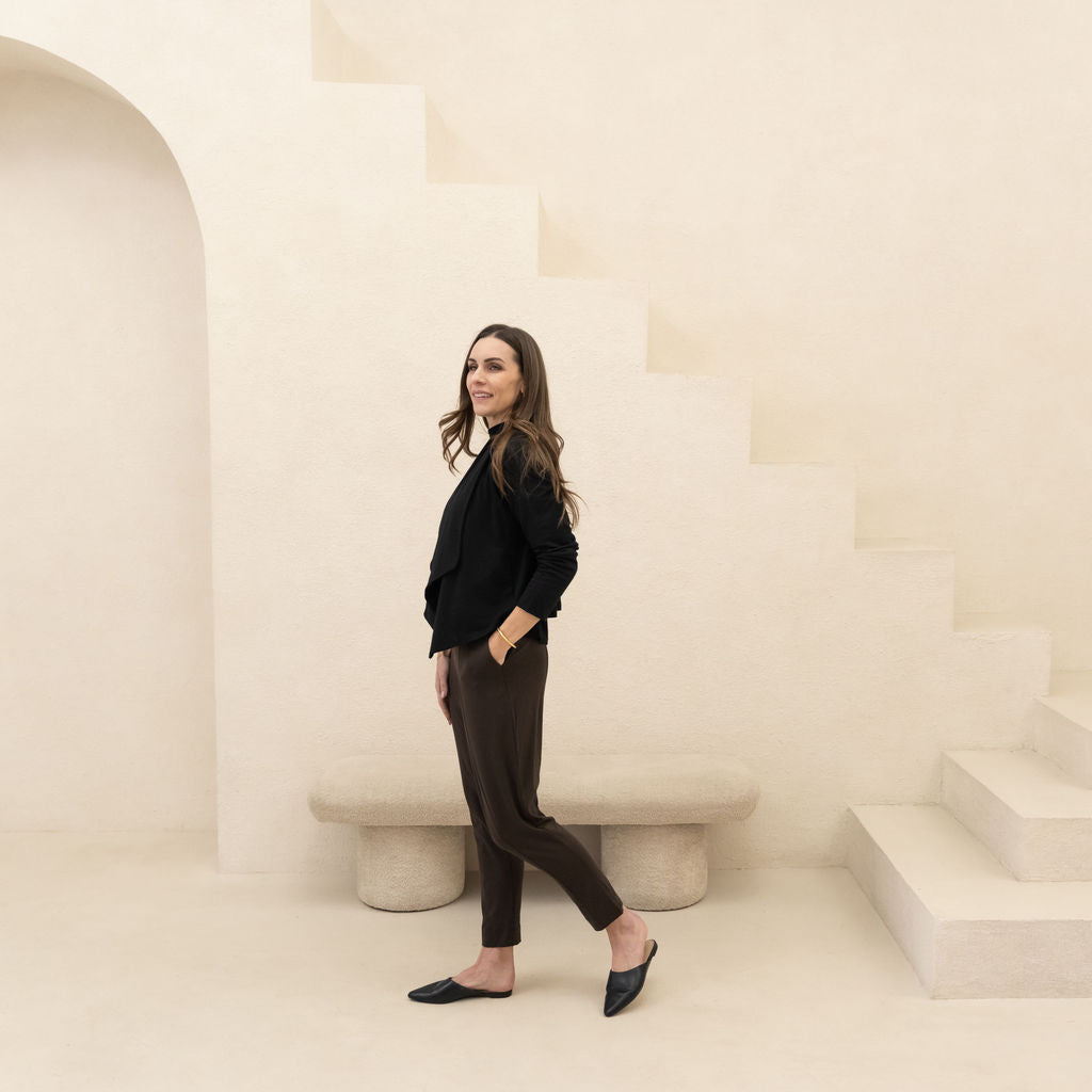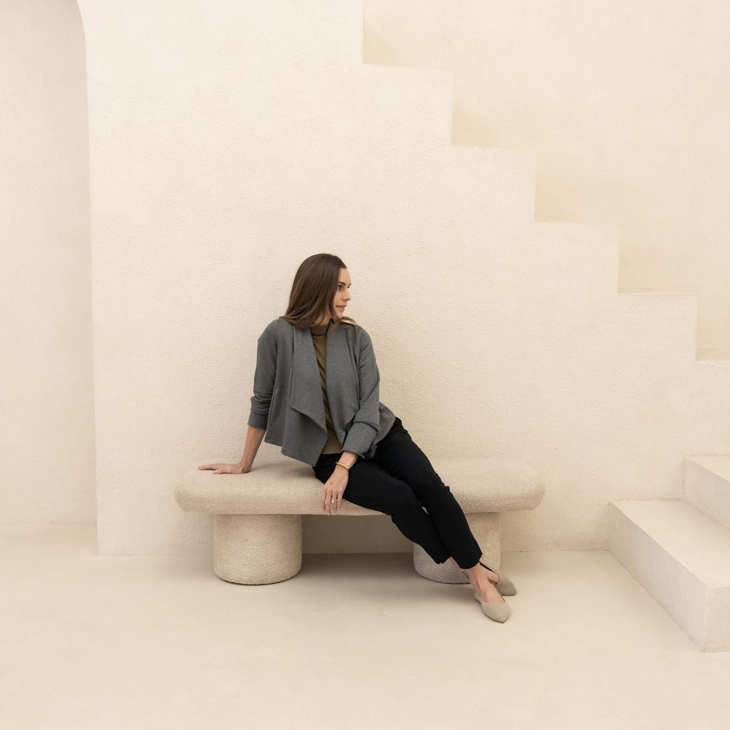 We use premium, breathable fabrics and design pieces to last—so they keep their shape, softness, and polish wear after wear. Cut + sewn in Canada in small batches for craftsmanship you can count on.