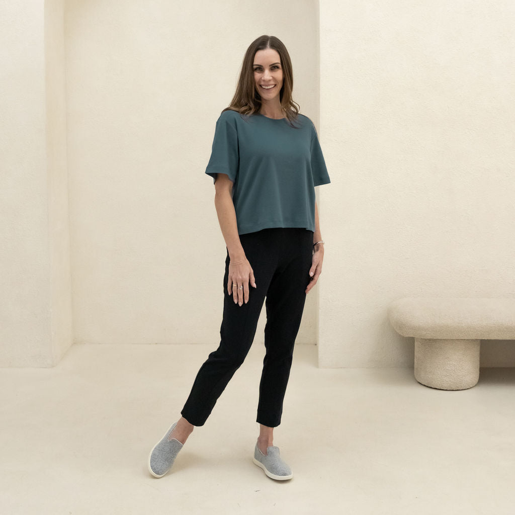 Our exclusive MicroModal® Lycra blend is knit and dyed right here in Canada from eco-friendly, plant-based fibers. Silky-smooth, luxuriously drapey, and breathable—so you look chic and feel amazing, wherever you go.