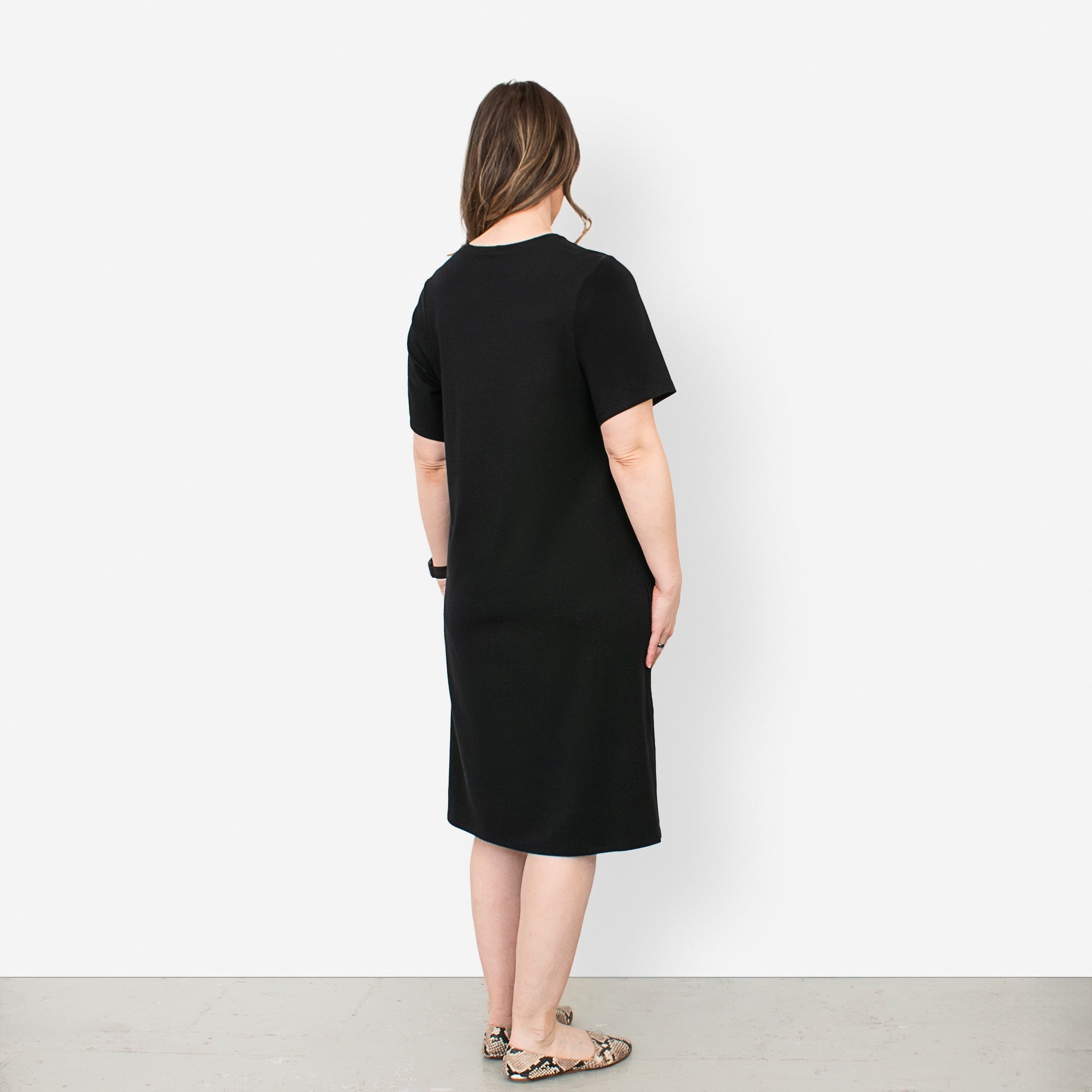 • Classic T-shirt dress silhouette with a flattering, relaxed fit