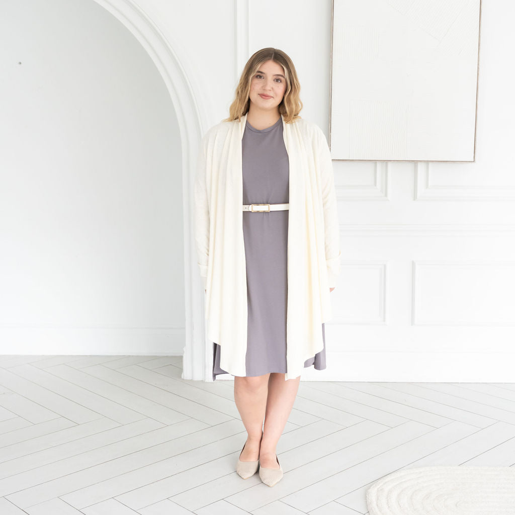 I love this new style! The longer length is great and it looks cute with a belt. This is my 3rd t-shirt dress from encircled. Great quality as usual.