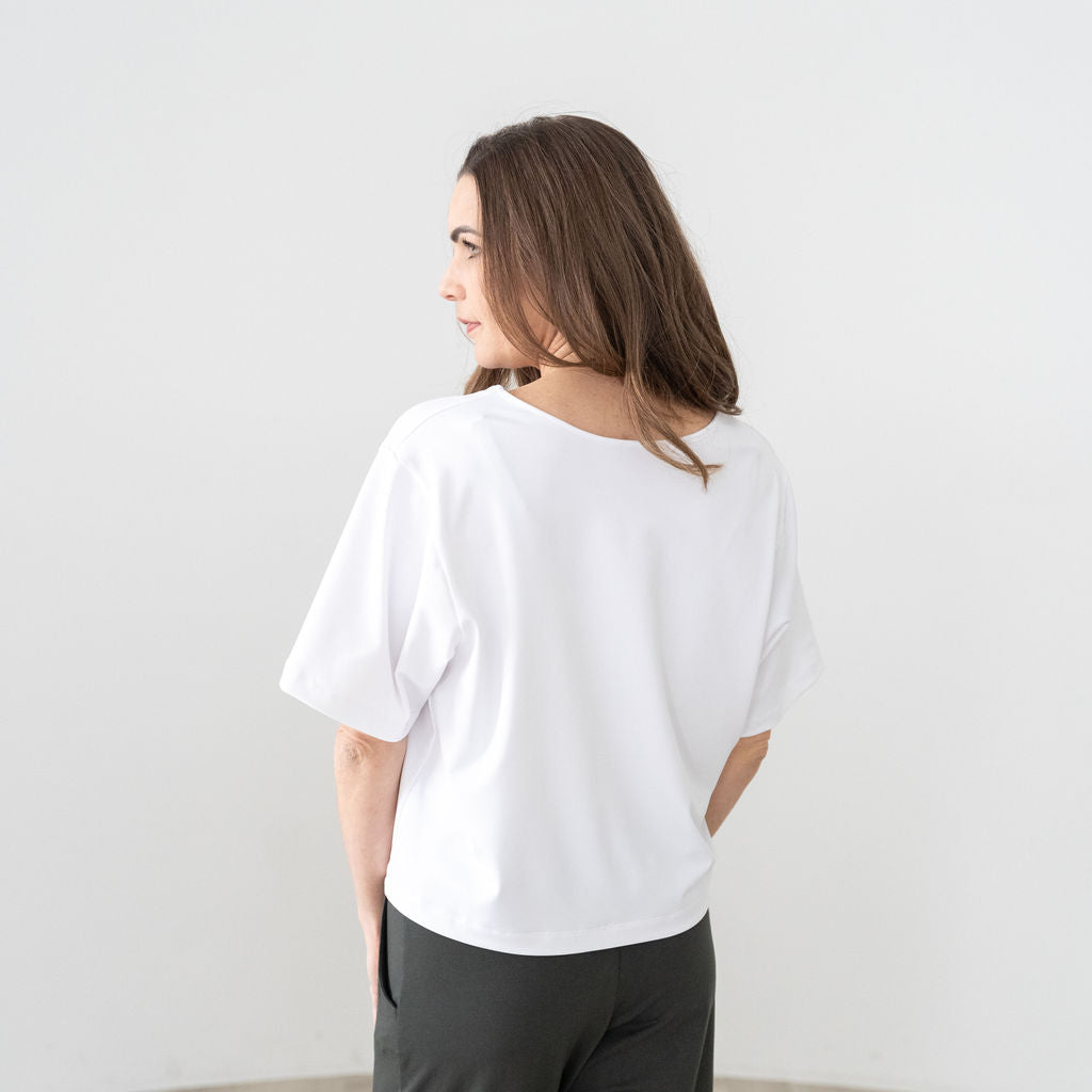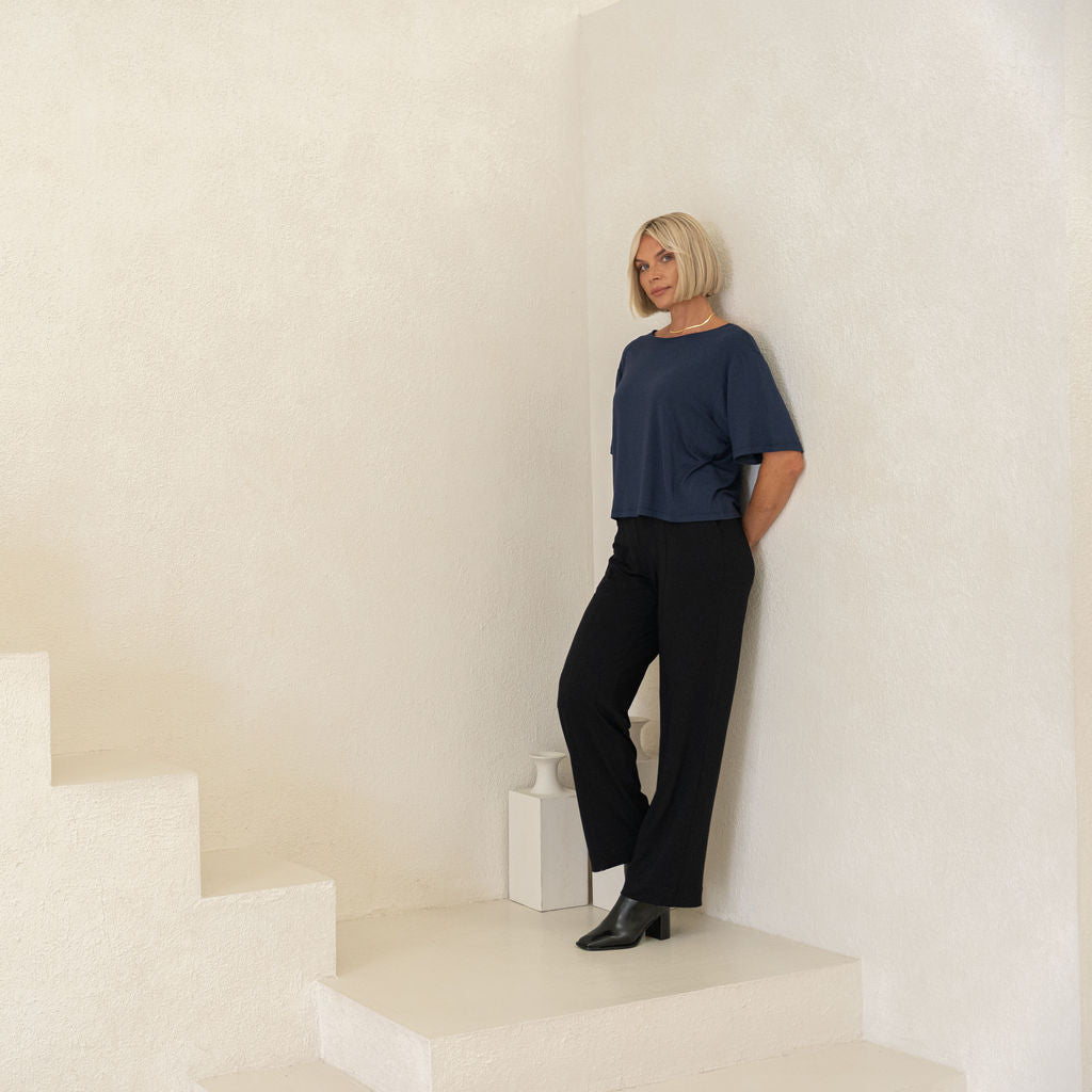 Looking for a wardrobe essential tee that’s both comfortable and stylish? Meet The Everyday Boxy Tee. Bamboo-Cotton blend fabric designed with a modern, boxy fit, longer short sleeves, and a reversible neckline for added versatility. It’s effortlessly stylish, making it the perfect capsule wardrobe piece—easy to mix, match, and style.