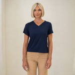 Meet the Going Places V-neck Tee—a timeless essential for your wardrobe. Crafted from breathable, 4-way stretch Rayon from Bamboo blend fabric. Smooth and never see-through, it features a streamlined fit that flatters at the high hip. Perfect for layering or solo wear, this durable tee is designed to outlast trends and countless wears and washes.