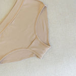 They’re smooth and gently stretchy, with flat seams to minimize VPL (visible panty line). While not a bonded “seamless” construction (as that's exclusively for synthetic fabrics), they lay flat under most fabrics when sized correctly. We tested them under our best-selling pants and the look is sleek.