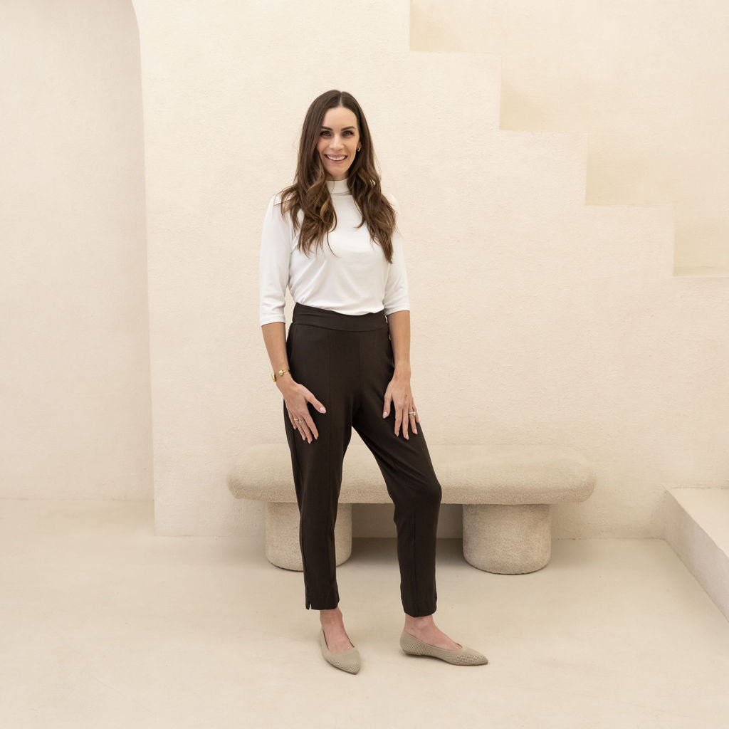 We use premium, breathable fabrics and design pieces to last—so they keep their shape, softness, and polish wear after wear. Cut + sewn in Canada in small batches for craftsmanship you can count on.